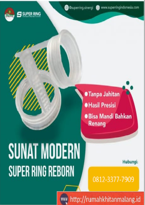 Sunat Metode Super Ring ini diklaim tanpa harus kontrol ke dokter dan 8 hari pasca sunat ring yang berada di alat kelamin si anak yang disunat akan lepas dengan sendirinya. rumahkhitanmalang.id